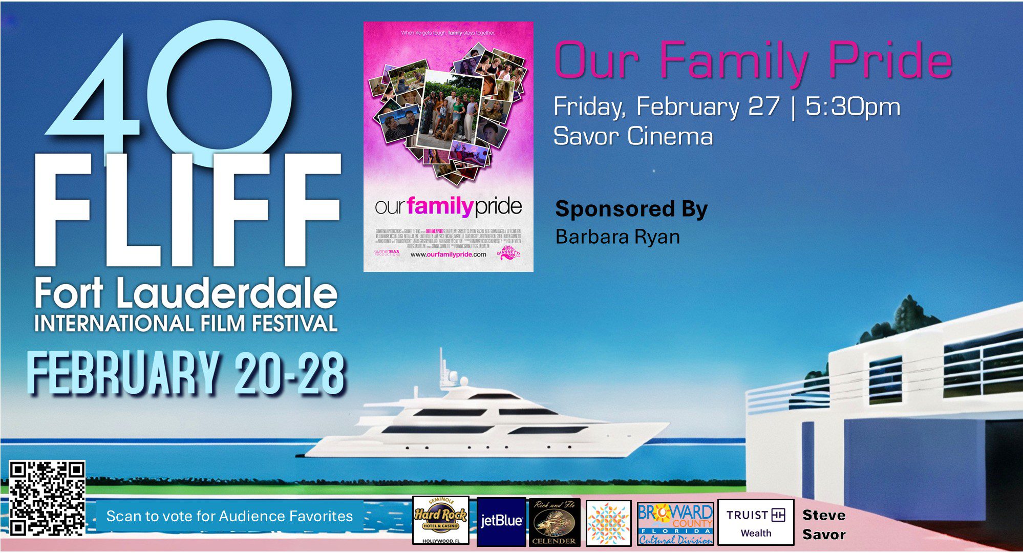 Founded in 1986, FLIFF is one of the longest-running film festivals in the world. FLIFF showcases films from around the world, the US and right here in South Florida, including features, documentaries, shorts, and world premieres. From Hollywood icons to indie newcomers, the lineup celebrates bold storytelling and diverse voices. The festival is proudly produced by the Broward County Film Society and has been named among the Top Film Festivals in the U.S.